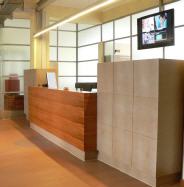 Stillvoller Empfangsbereich mit klarer Linienführung und einer gelungenen Kombination unterschiedlicher Materialien. Mit diesem Empfangsbereich werden Kunden und Kontakte kreativ begrüßt und inspiriert.
